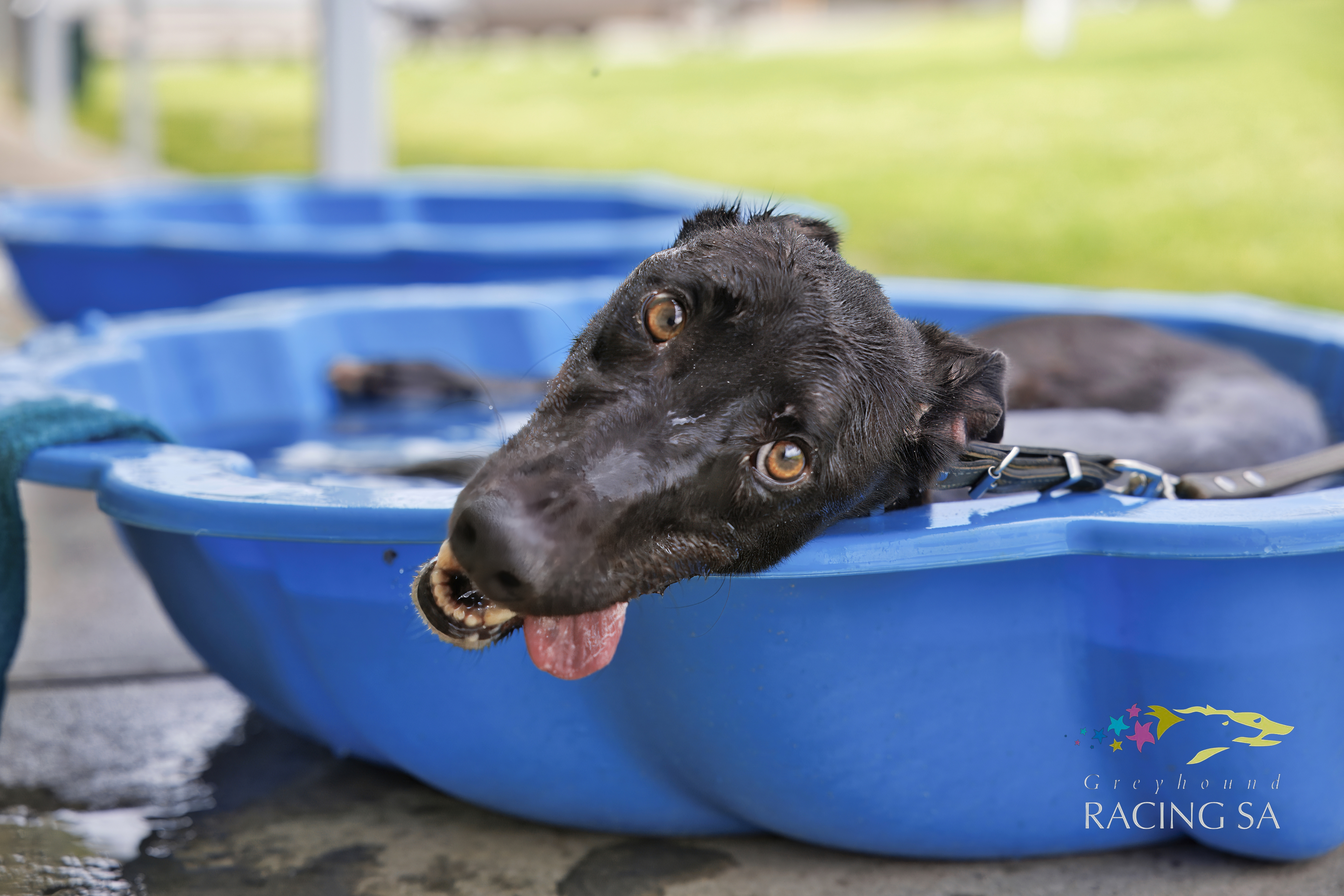 A small paddling pool can be an excellent way to help a greyhound stay comfortable. Hard plastic shell pools, available at many hardware and department stores (Kmart, Bunnings etc), tend to hold up well. Position the pool in a shaded area so the water stays cool and top it up as needed on hotter days. Some dogs may simply dabble their feet or take a drink, while others will happily lie down and relax in the water.