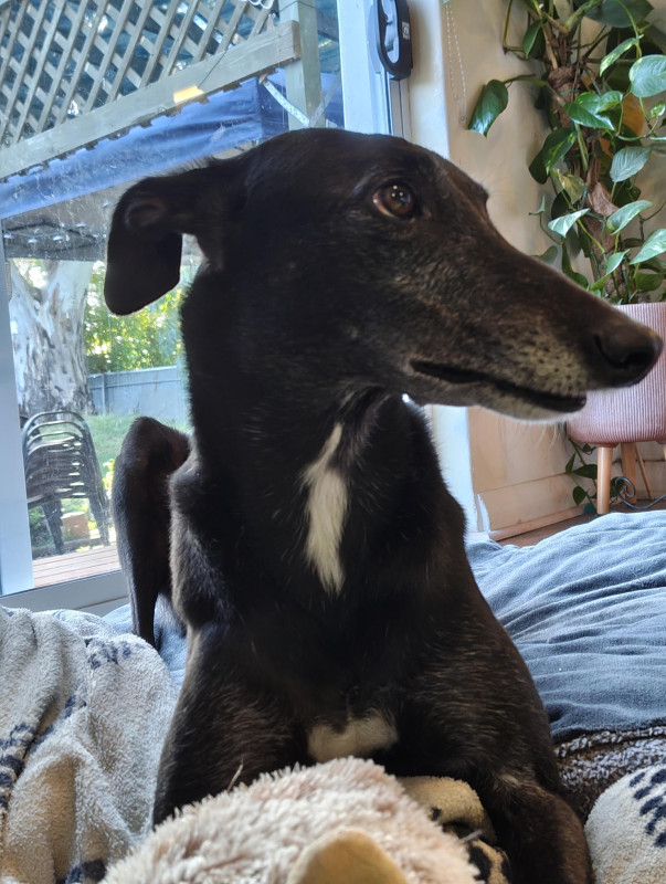 Misty who through no fault of her own is in need of a new home! She is a very affectionate girl who will need to live with some company, whether human or hound.