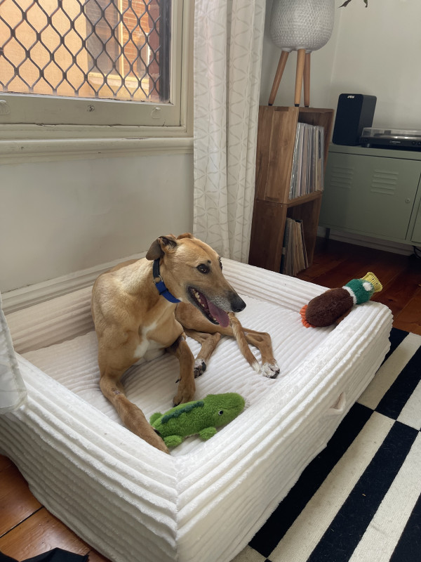 He's really easy to look after, spends most of his time lying in his bed. He loves a cuddle and pat but is mostly happy having his own space, while in company of humans.