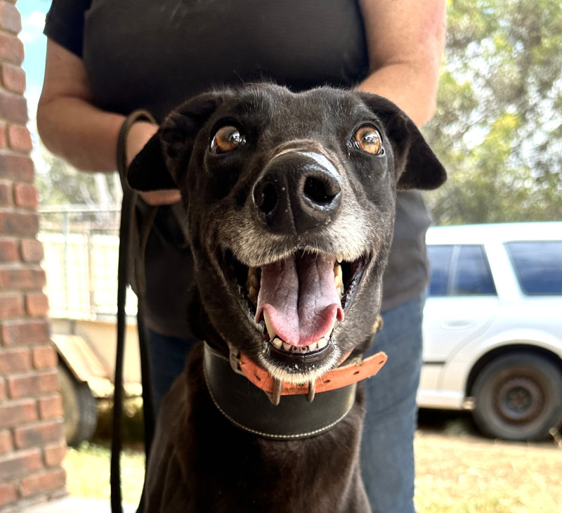 Blacky who raced as Bruce’s Angel is a little on the shy at first but once she warms up, she will blossom. Blacky would benefit from going to a home with a confident male.