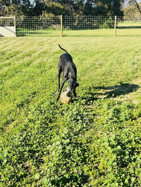 This gentle giant love people and neck rubs. He loves to play with his full size so would suit robust and tolerant playmates. He is nicknamed "Horse" due to his bigger size!