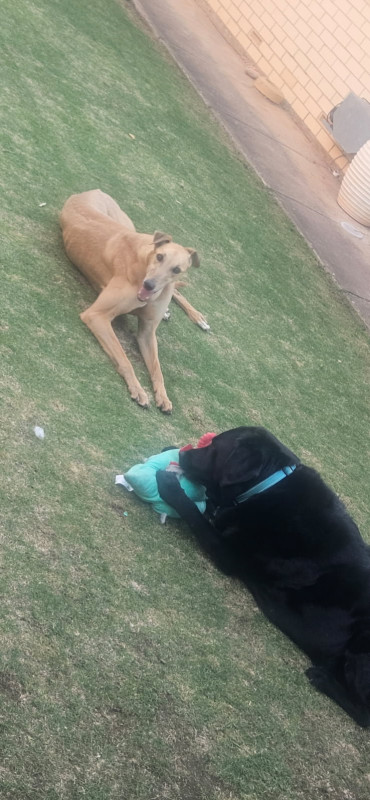 - Rusty is fine to be an only dog or with a 10kg+ dog companion.
