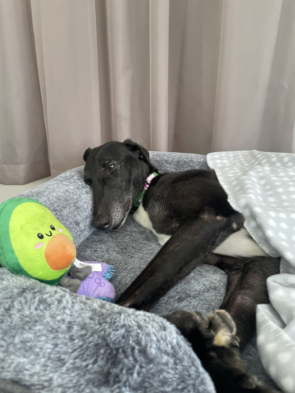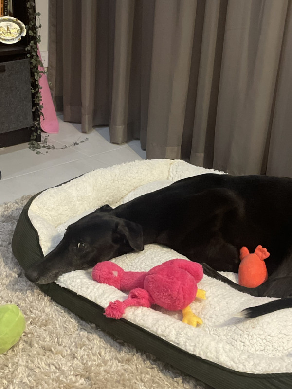 • He gets along well with other greyhounds and would love a friend to keep him company