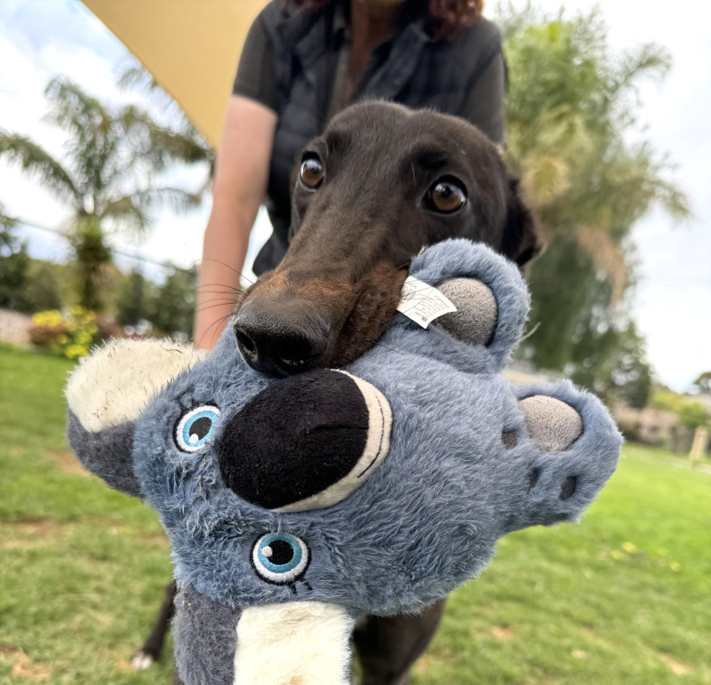 Sacha is puppy-like in nature – she loves toys, playing with other dogs and jumping up for cuddles!