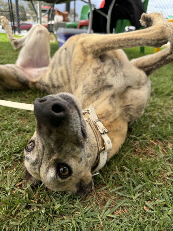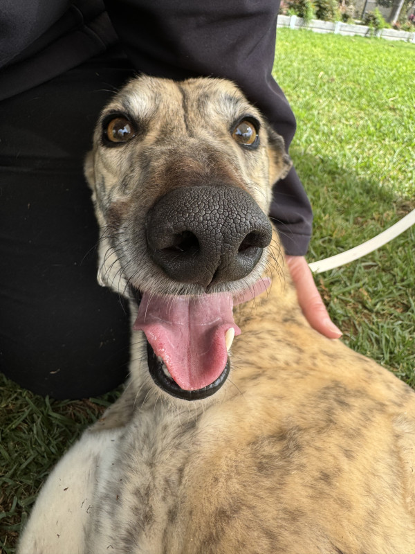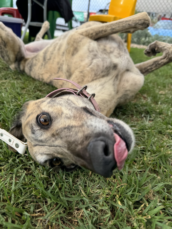 Exuberant Xayla affectionately nicknamed “Sparks” had 72 race starts under the racing name ‘Sparks Flying’… this affectionate, sweet dog who is a big sook is now ready to send sparks flying of another kind as she sets your heart on fire!