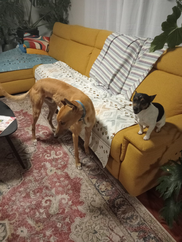 - Lewie has had some experience in the home which he shares with his Jack Russell friend!