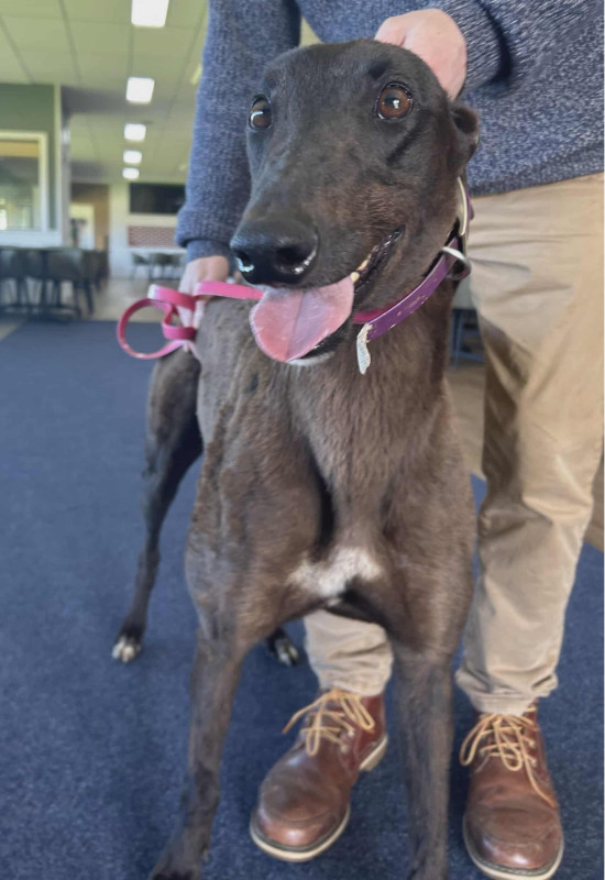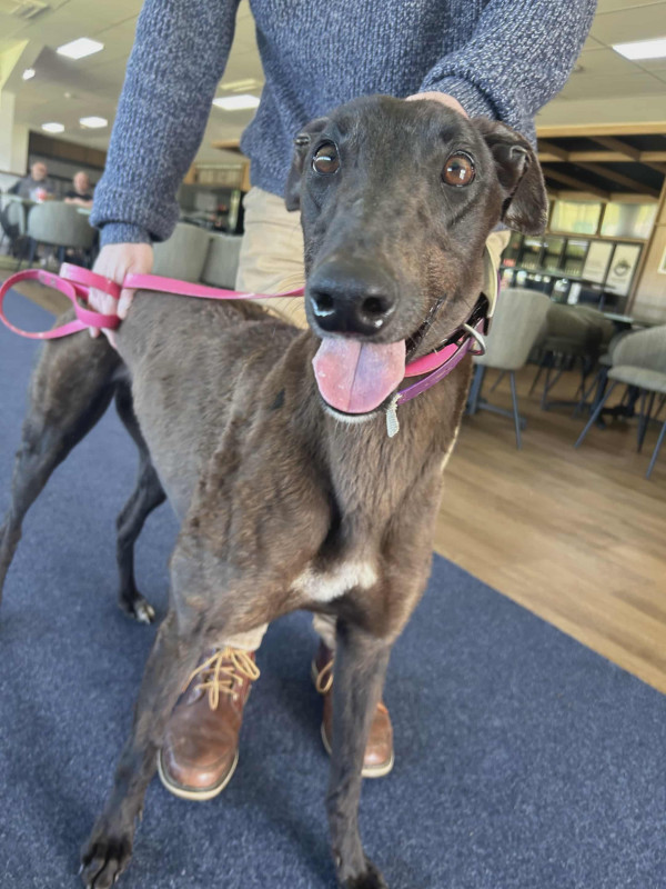 Narla, who has previously raced as “Turning Oak”, is an incredibly happy and loving girl, who loves life so much that she wagged her tail off! She is looking for a loving forever home to retire, tail still wagging.