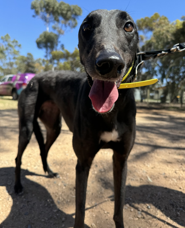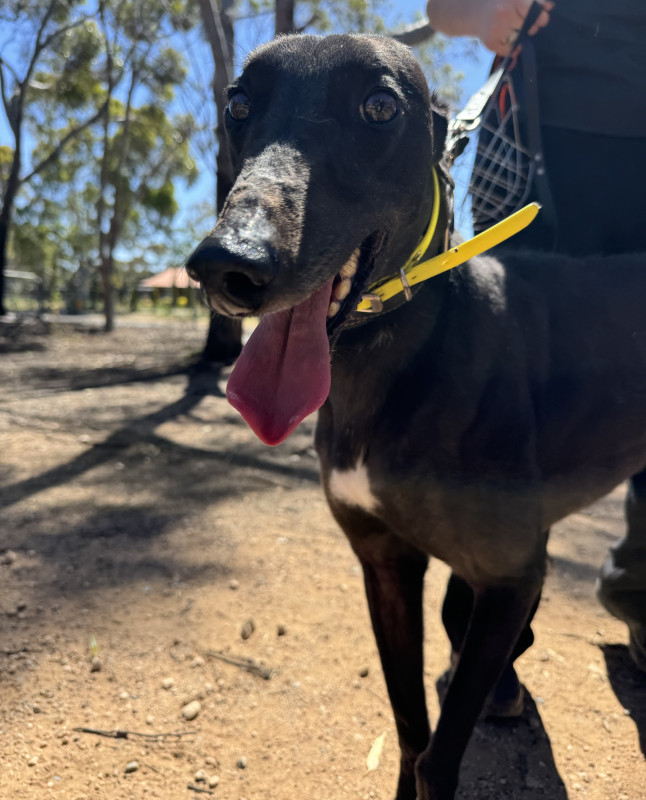 Roberta, who has previously raced as “Bomb Roberta”, is looking for a calm home to spend her retirement in, where she can relax as much as she wants and get as many cuddles as she can while she does it!