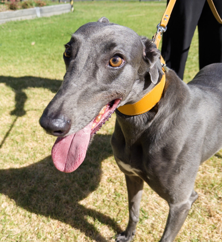 - She does love the company of dogs and goes for walks with the other greyhounds she lives with in the home.