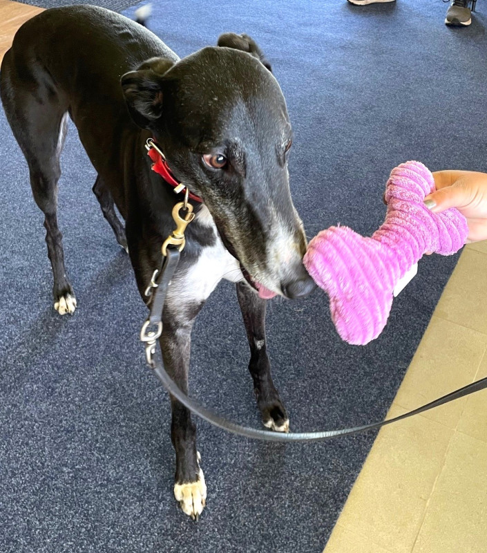 - He has had some home experience with his trainer – he is the perfect pet and loves to watch TV!